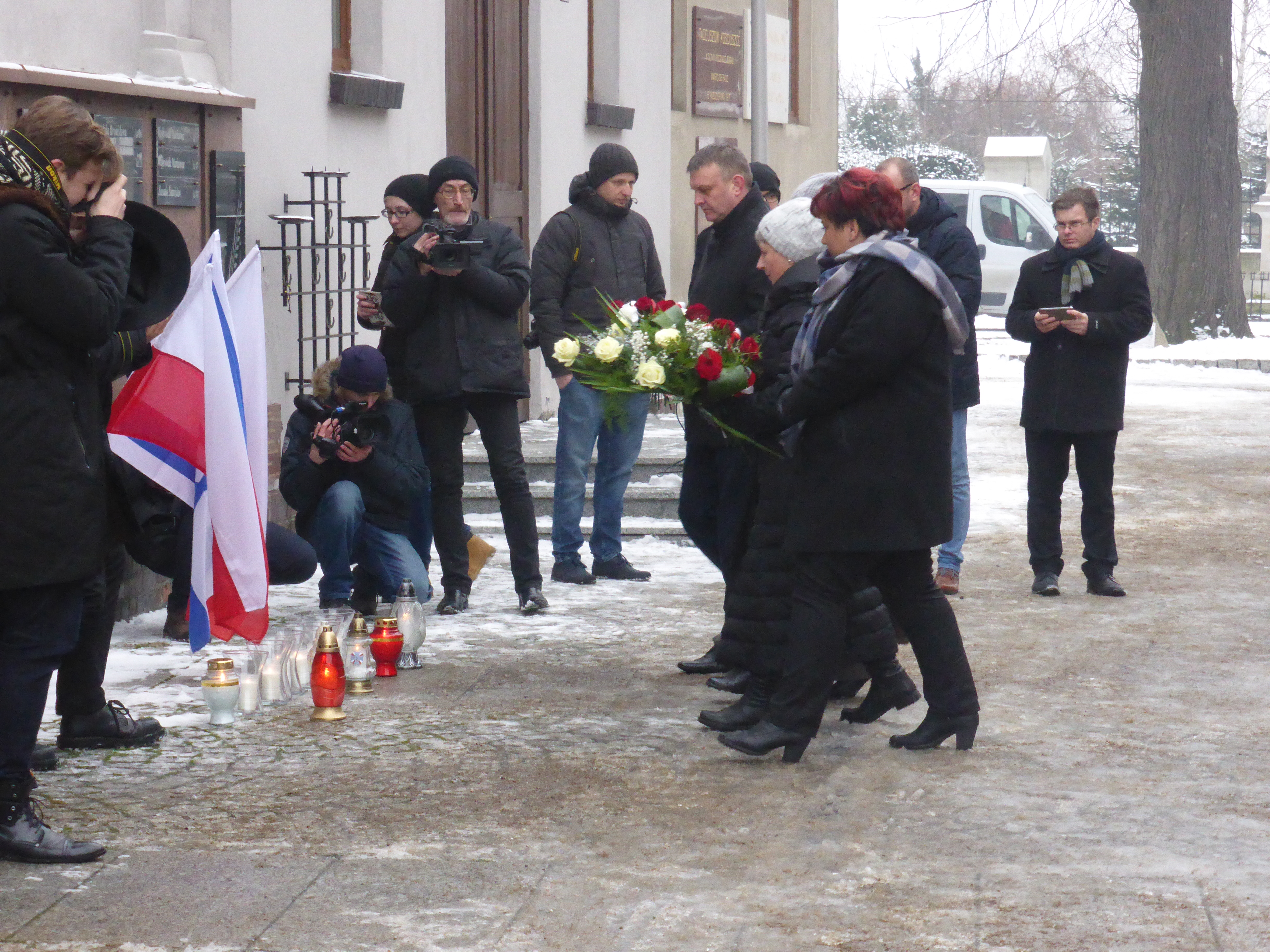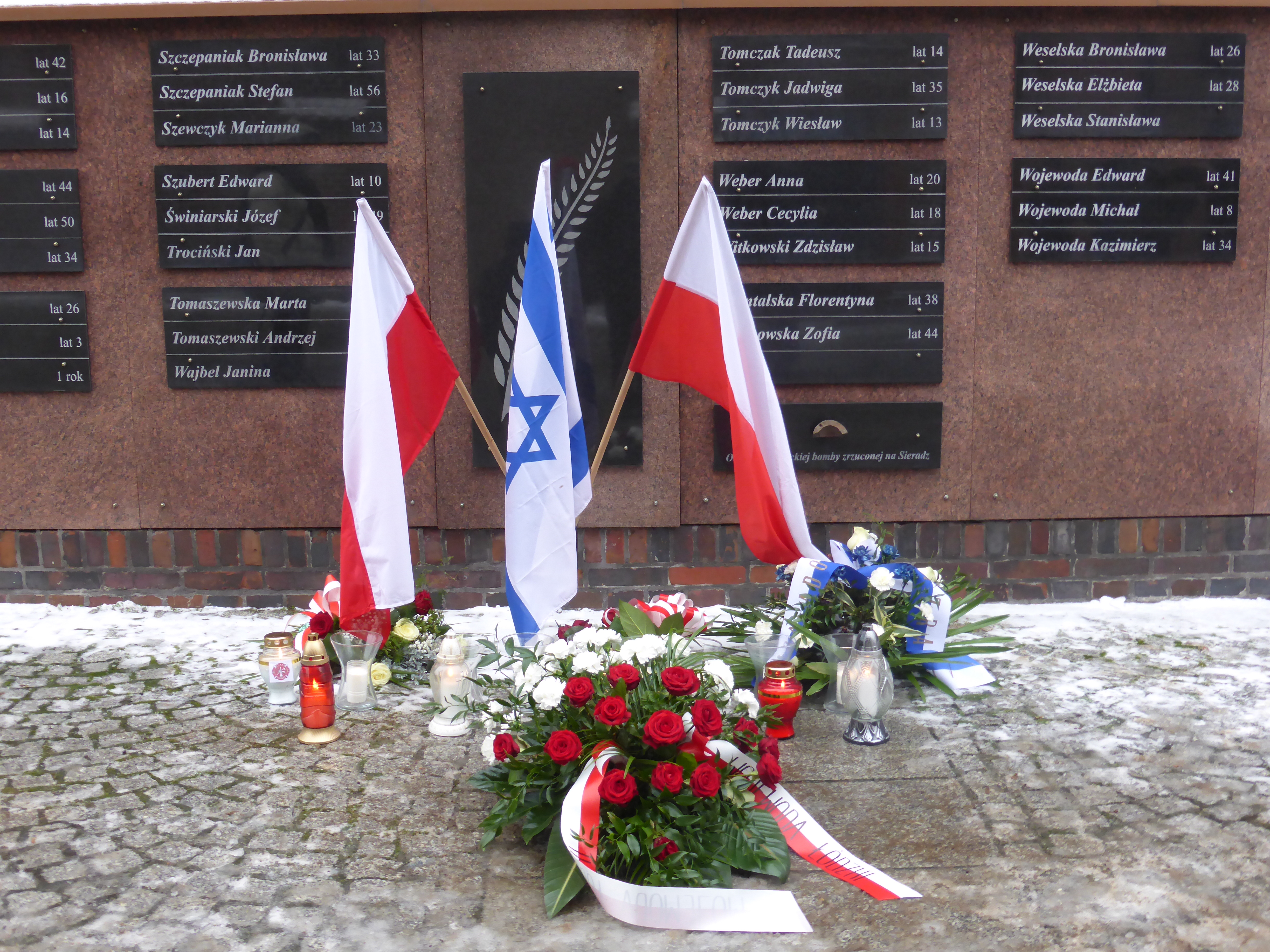 udali się pod Ścianę Memorialną, znajdującą się przy sieradzkiej farze