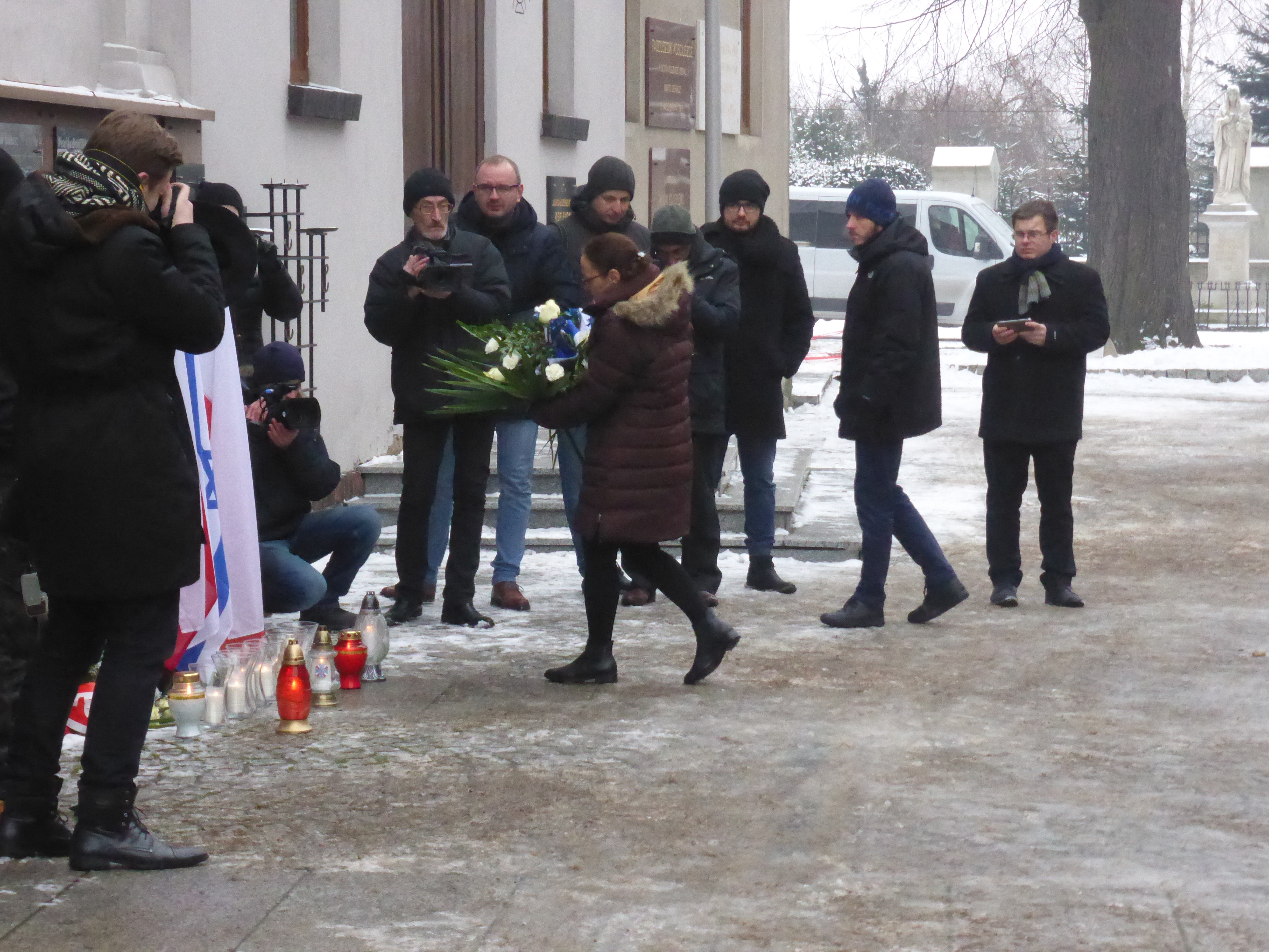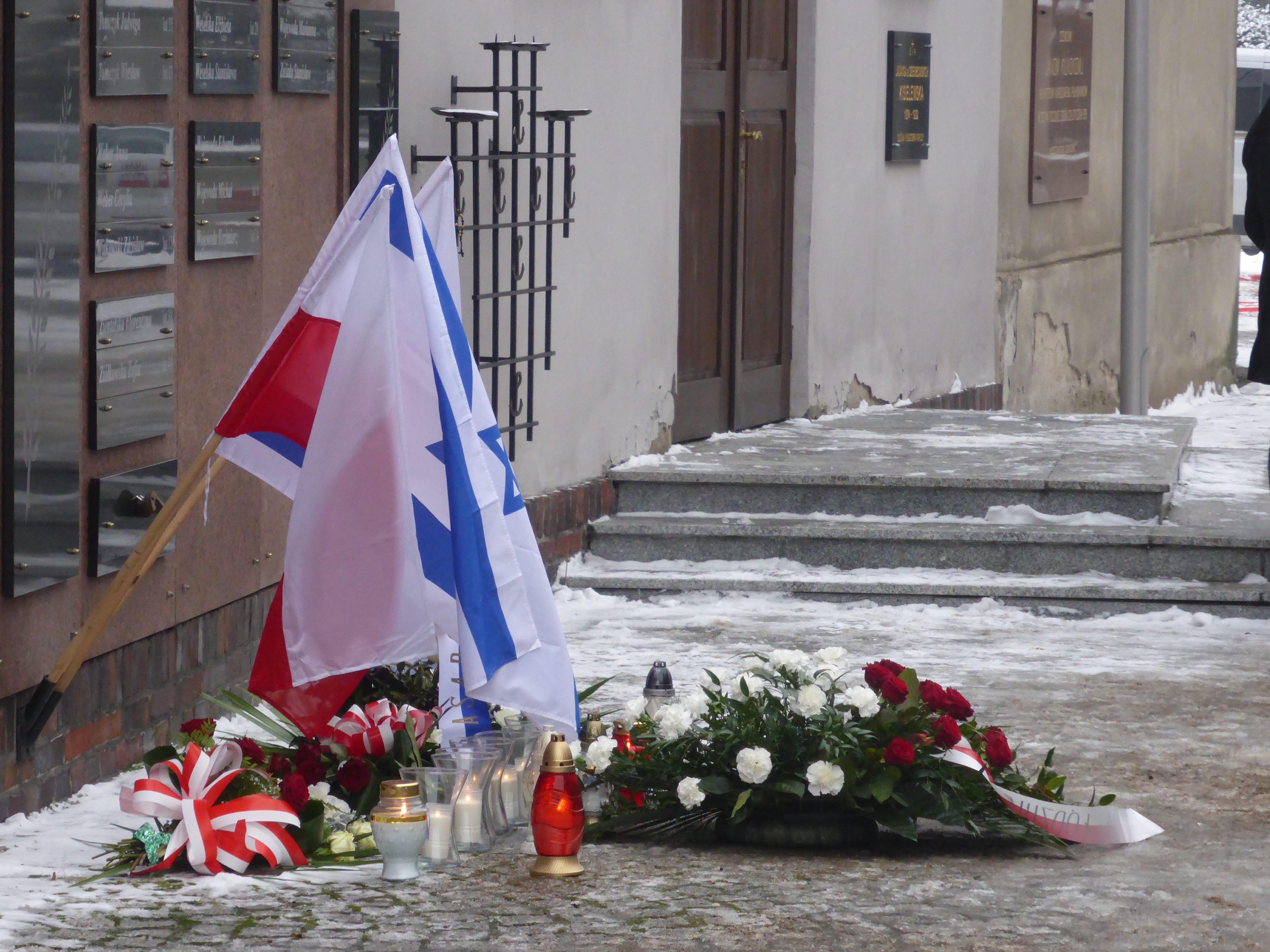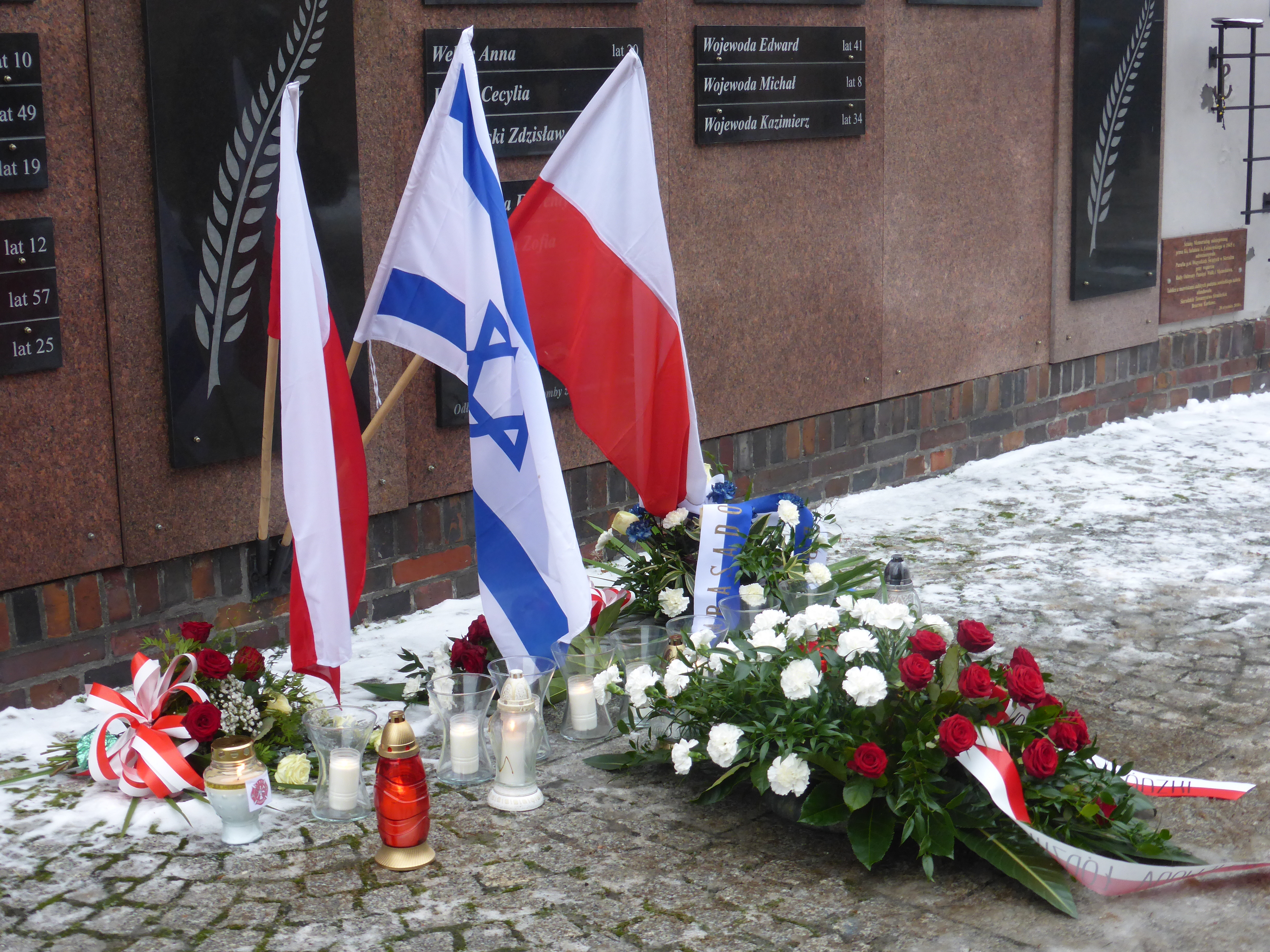 Ambasadora Izraela w Polsce, złożyła przy Ścianie Memorialnej wiązankę